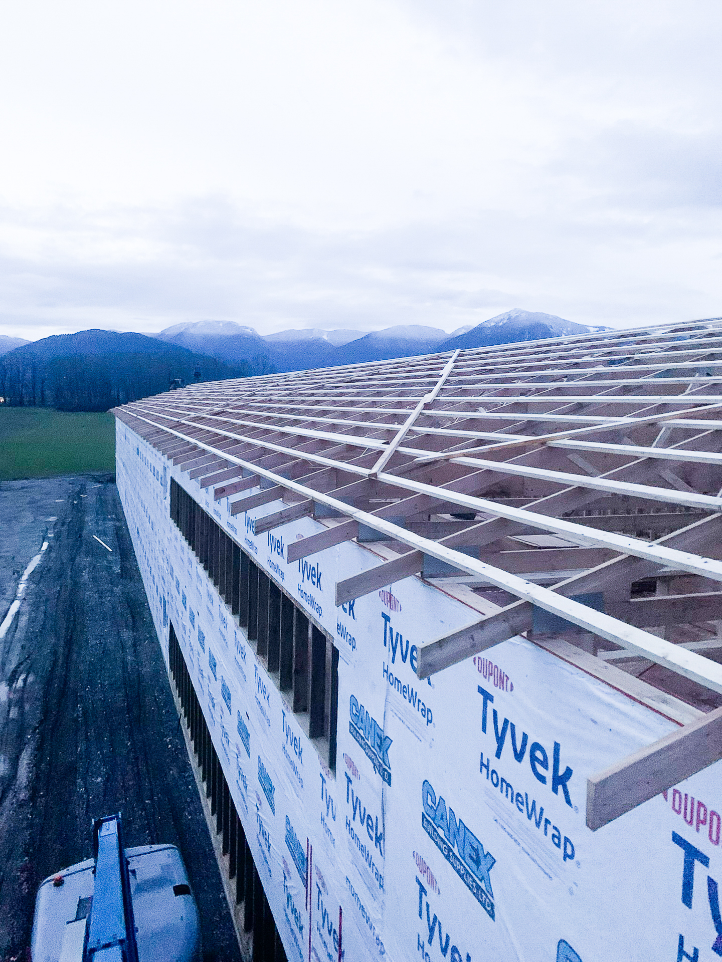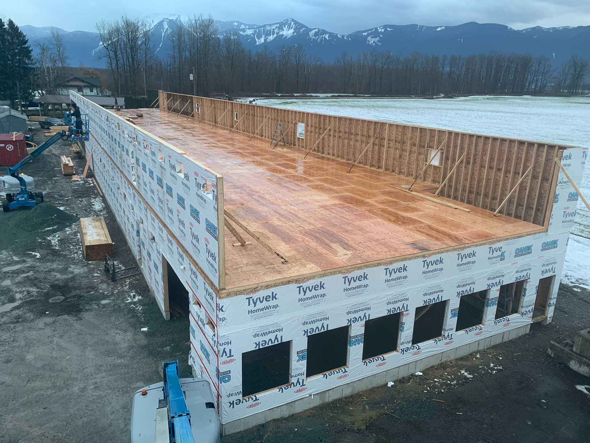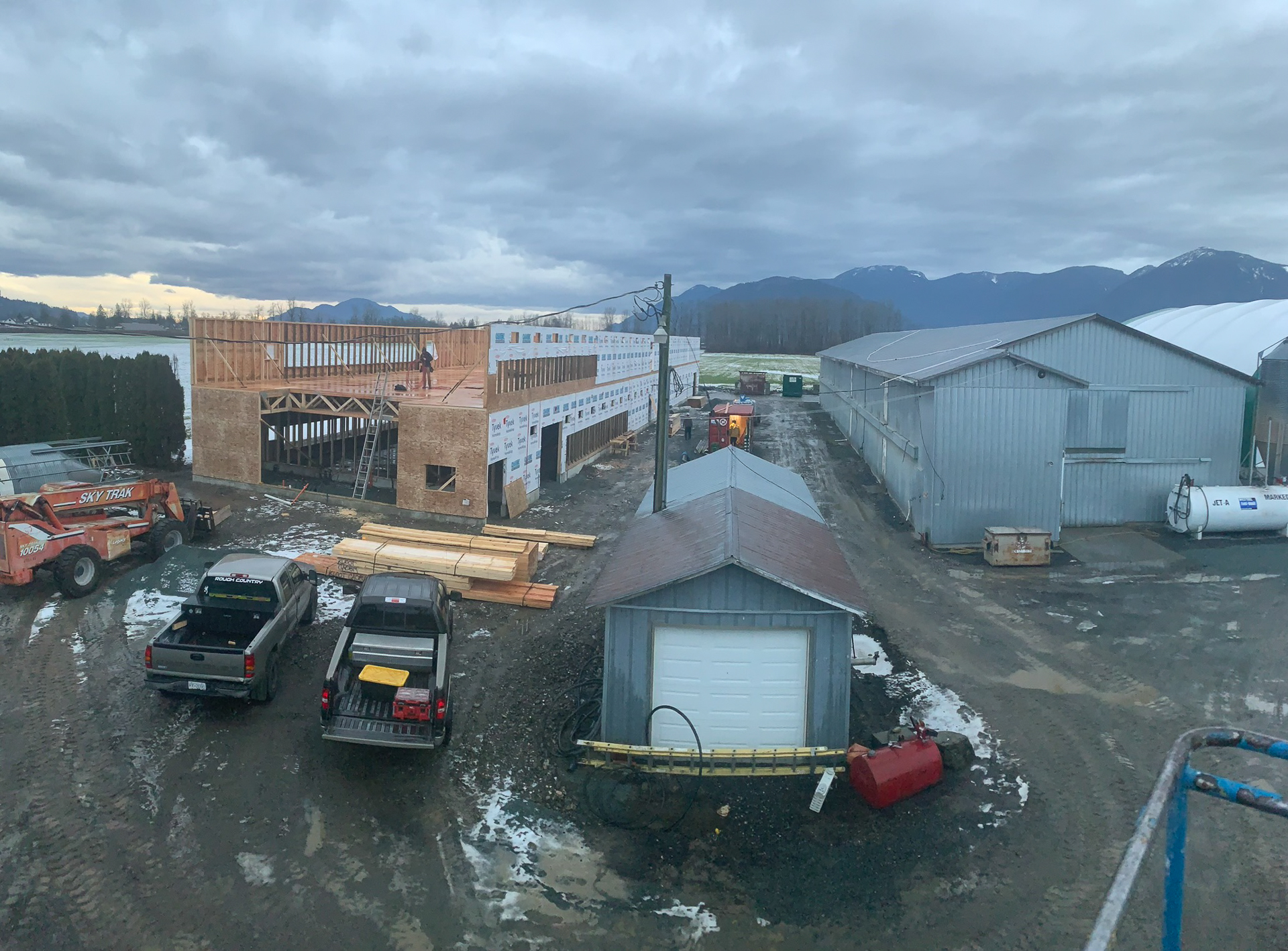Agricultural structure with walls, roof, and foundation